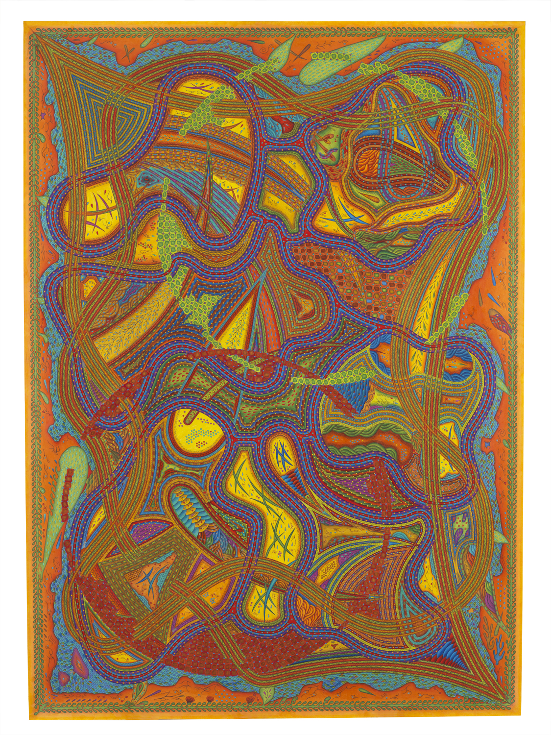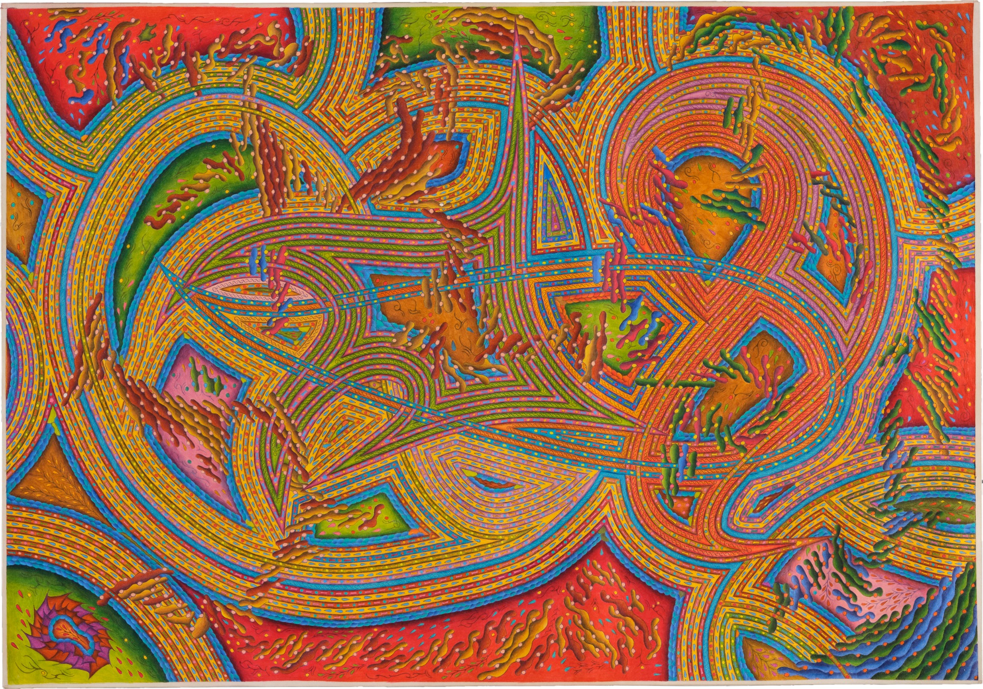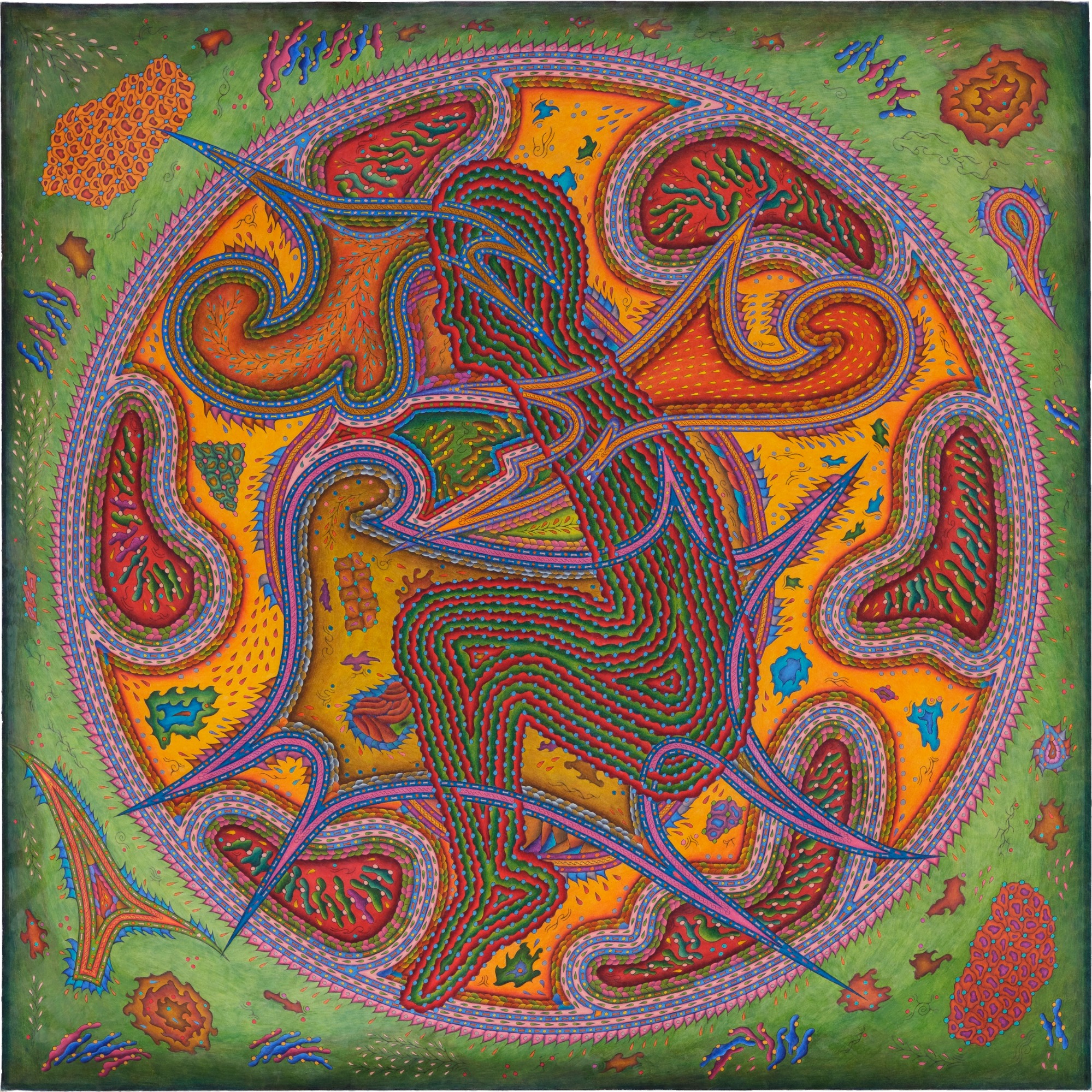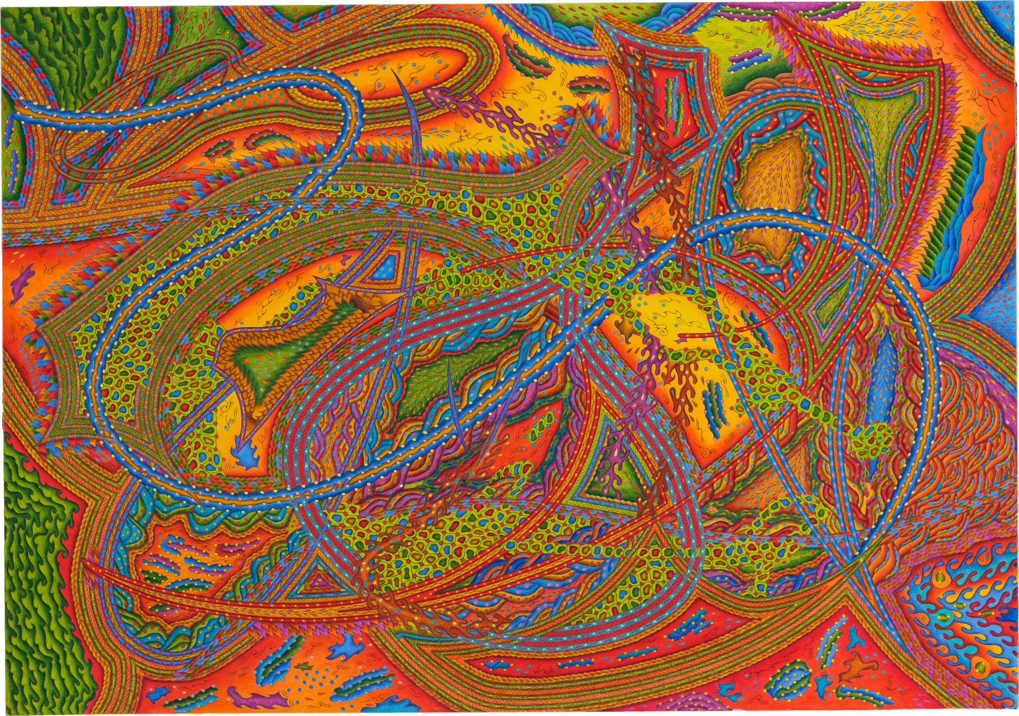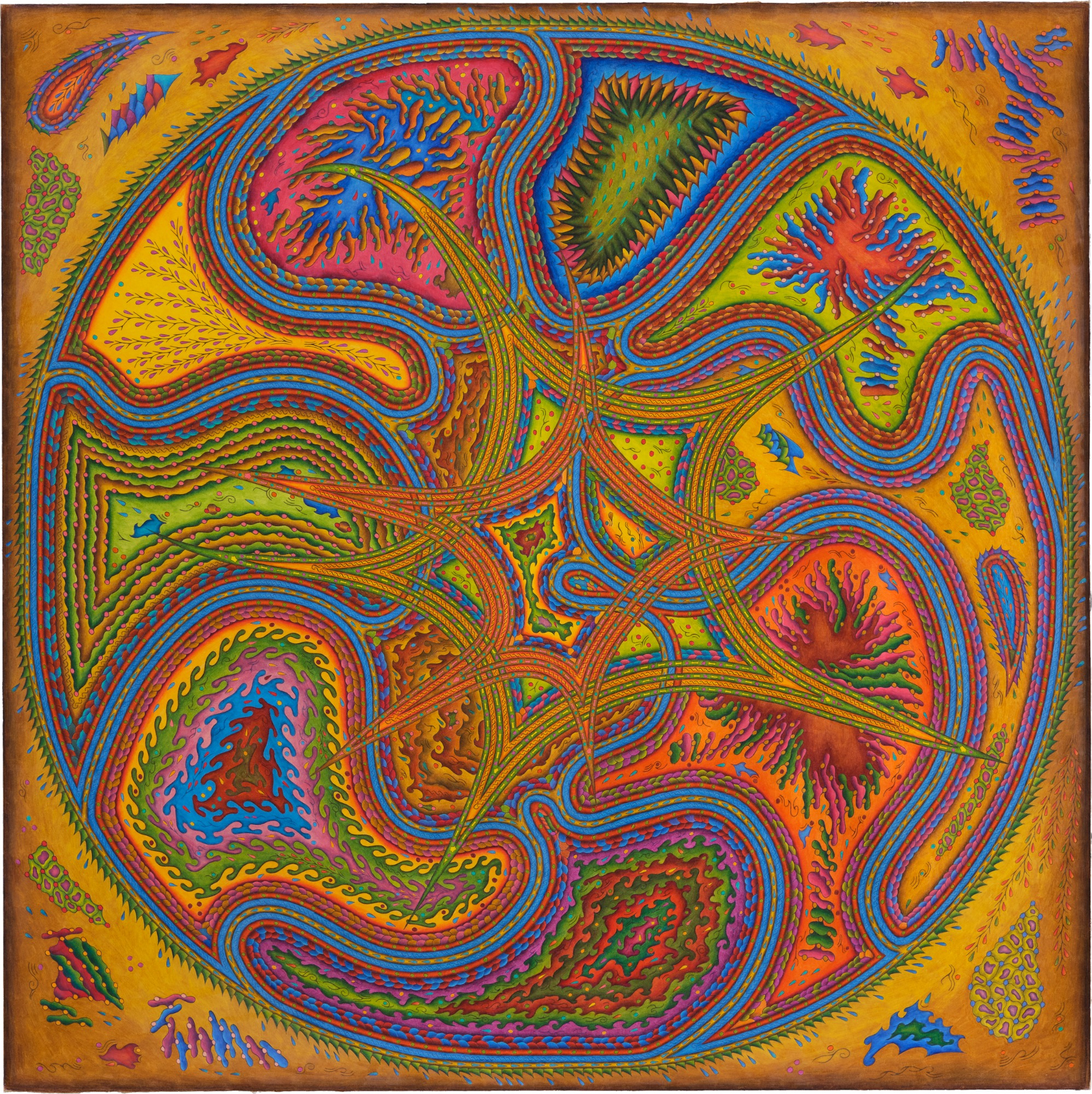 In diesen Arbeiten entstehen Formen aus Bewegung – Schicht für Schicht, Linie für Linie. Sie wachsen nach außen, verdichten sich, verzweigen sich. Farbe und Struktur treten in einen Dialog, der an lebende Systeme erinnert – zwischen Mikrokosmos und Imagination. Wenn du die Linien verfolgst, kannst du das Werden selbst sehen: die Bewegung, die im Material weiterlebt.